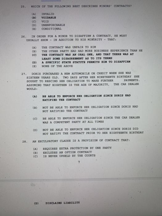 Solved 25 Which Of The Following Best Describes Minors Chegg Com